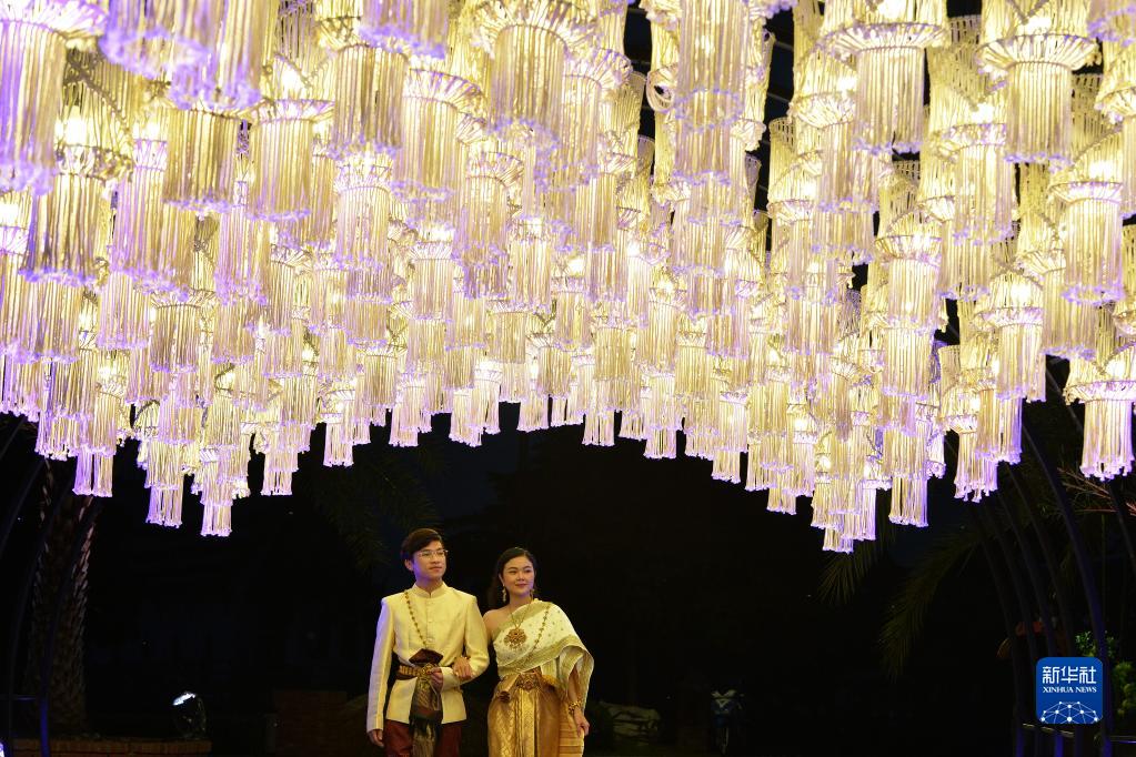 11月8日,游客在泰国北榄府举行的国际灯笼美食节预展活动上观赏灯笼。