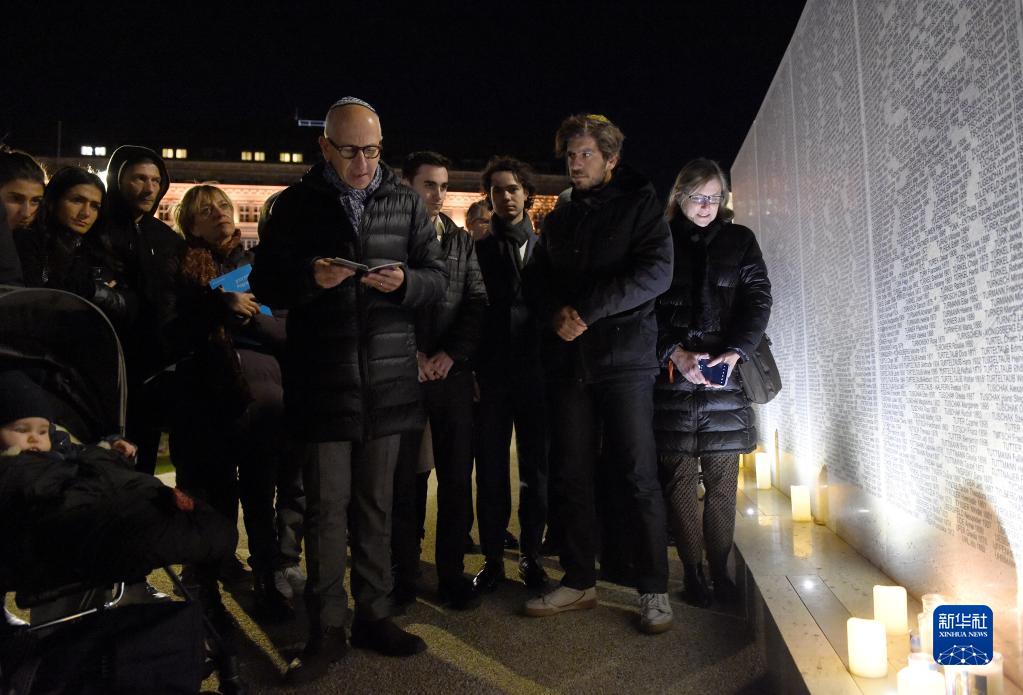 11月9日,在奥地利维也纳,人们在新落成的大屠杀纪念墙前缅怀遇难者。