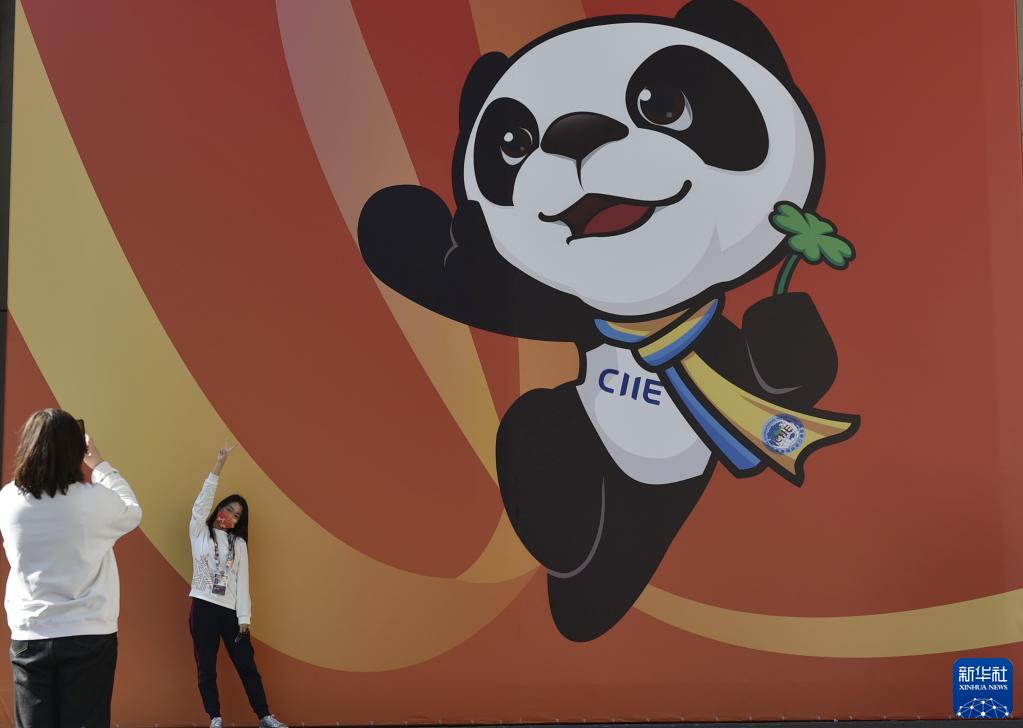 11月10日,参会者在进博会上的一处海报前留影。