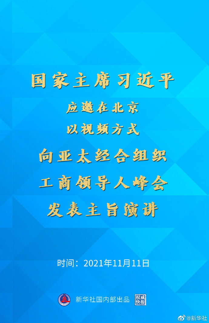 11月11日,国家主席习近平应邀在北京以视频方式向亚太经合组织工商领导人峰会发表主旨演讲。