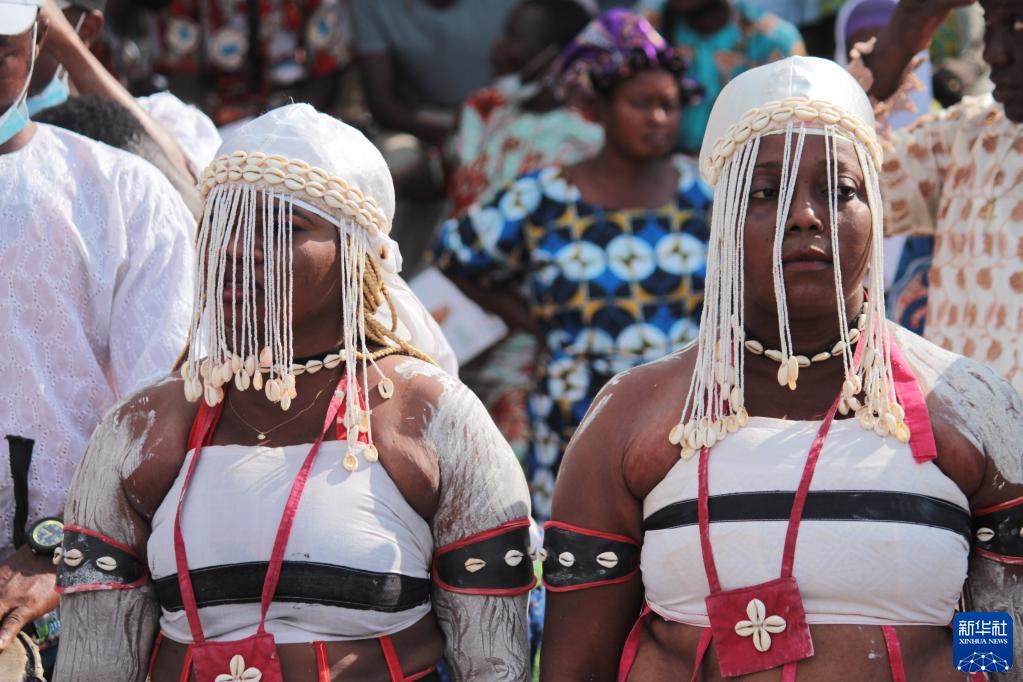11月10日,妇女身着传统服饰聚集在贝宁科托努机场附近庆祝文物回归。