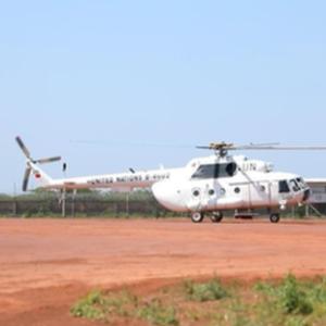 11月10日,中国第二批赴阿卜耶伊维和直升机分队的米-171直升机执行飞行任务。新华社发(刘士奇摄)