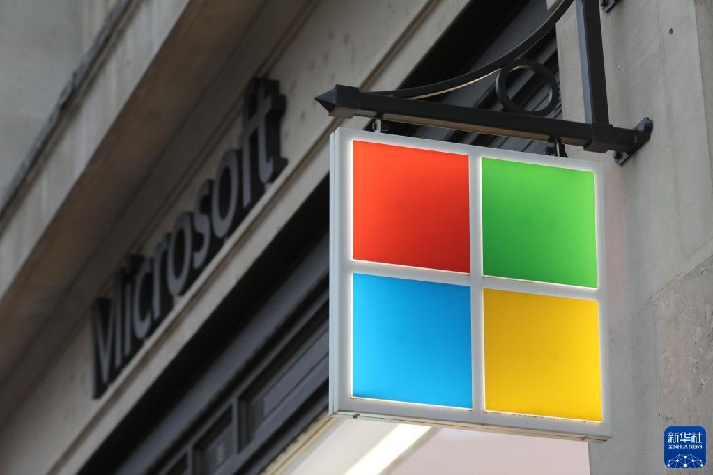 这是11月13日在英国伦敦拍摄的微软品牌标识。