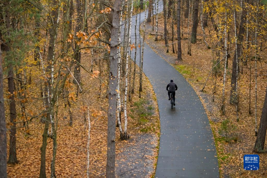 11月19日,一名男子在比利时林堡省的博斯兰自然保护区骑行。