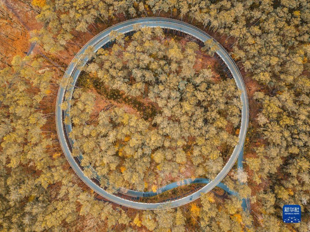 这是11月19日在比利时林堡省的博斯兰自然保护区拍摄的“林中骑行”绿道(无人机照片)。