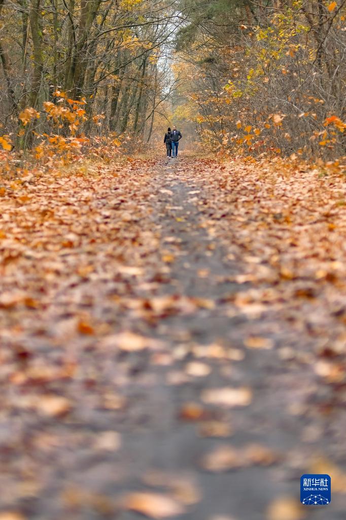 11月19日,游客在比利时林堡省的博斯兰自然保护区散步。