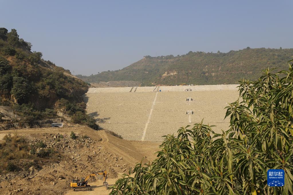 这是11月19日在巴基斯坦旁遮普省拍摄的卡洛特水电站大坝。新华社记者 李浩 摄