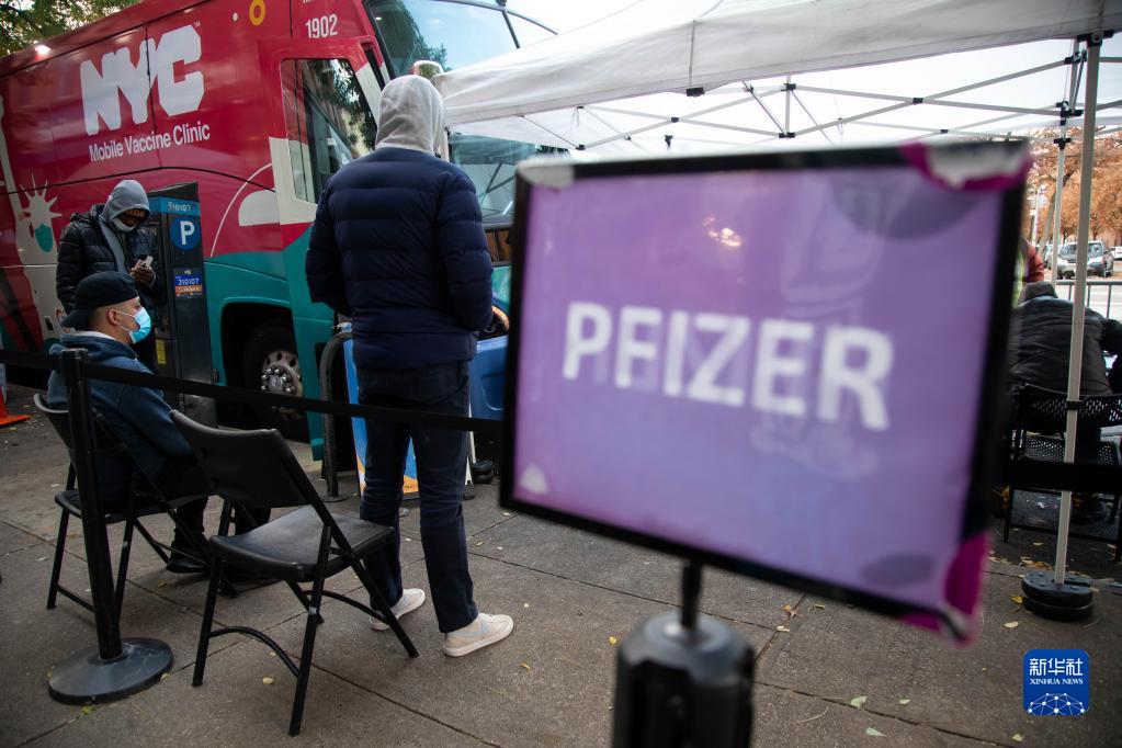 11月19日,人们在美国纽约一辆新冠疫苗接种车外等候。