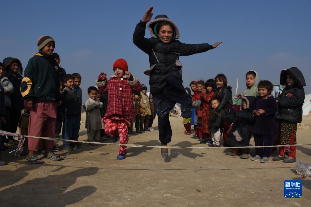 11月20日,孩子们在阿富汗马扎里沙里夫一处流离失所者营地玩耍。新华社发(卡瓦·巴沙拉特摄)