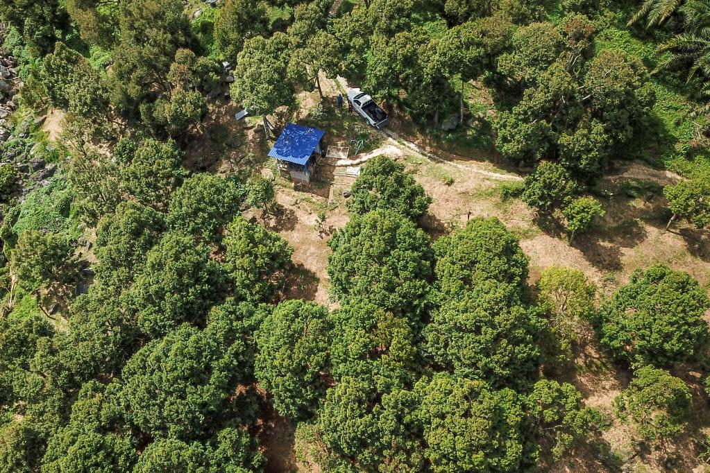 11月21日在马来西亚彭亨州劳勿航拍的“山姆猫山王榴莲园”(无人机拍摄)。新华社记者朱炜摄