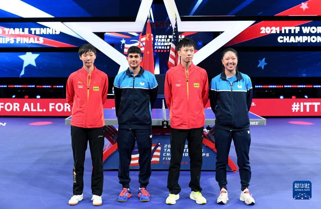 国际乒联21日晚宣布,中美选手将跨国配对出战2021年休斯敦世乒赛混双比赛,中国选手林高远搭档美国选手张安,美国选手卡纳克搭档中国选手王曼昱。22日,这两对中美混双组合进行合练。