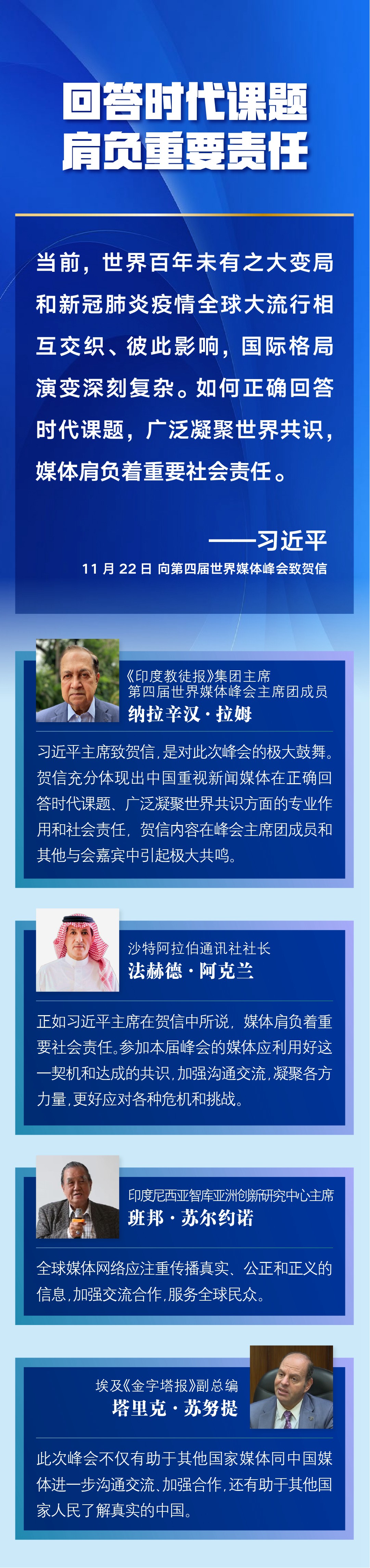 多国媒体人士认为,习近平主席的贺信对全球媒体更好肩负社会责任、广泛凝聚世界共识作出重要阐述,为新形势下世界媒体加强交流与合作、弘扬全人类共同价值、推动构建人类命运共同体注入新的推动力——