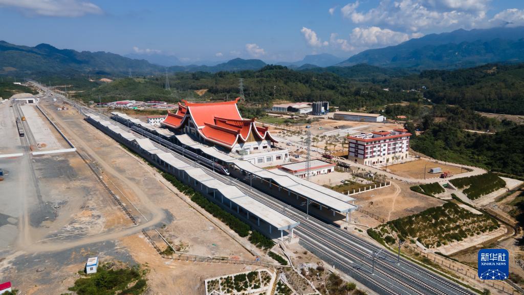 这是11月22日在老挝拍摄的中老铁路琅勃拉邦站(无人机照片)。