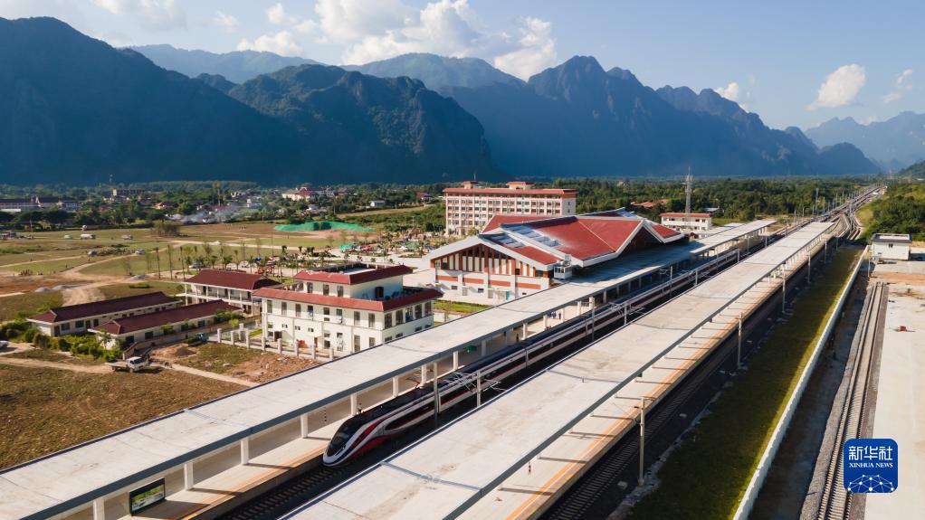 这是11月22日在老挝拍摄的中老铁路万荣站(无人机照片)。