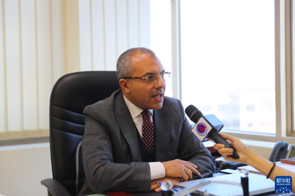 11月23日,埃及六角项目与建筑管理咨询公司主席艾哈迈德·谢尔比尼在埃及开罗的“城市之星”综合体办公楼内接受新华社专访。新华社记者 隋先凯 摄