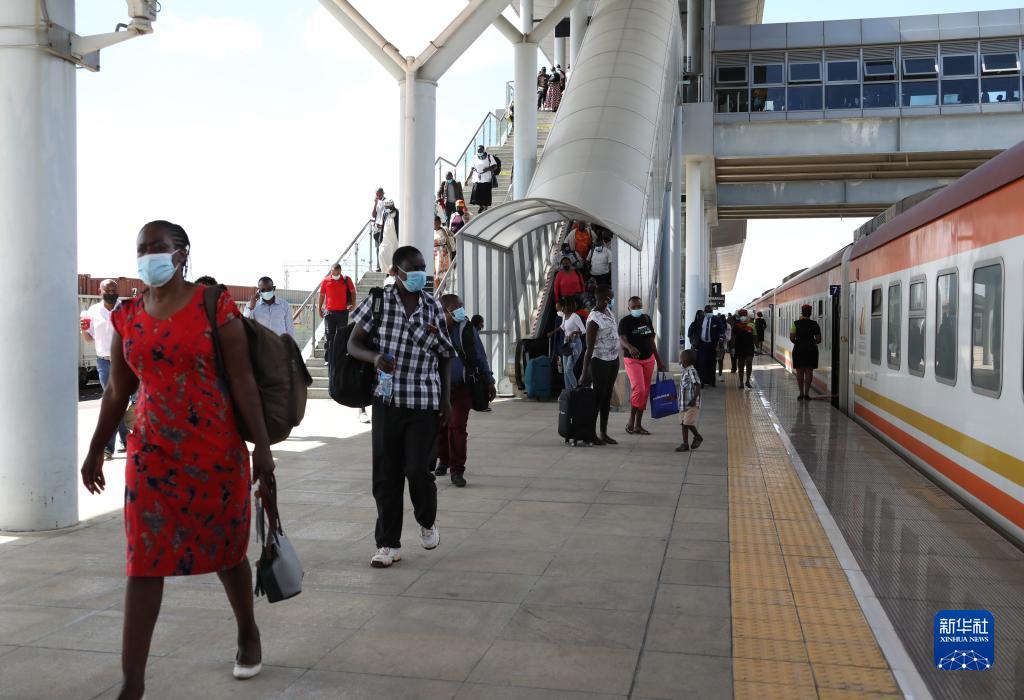 11月17日,在肯尼亚蒙内铁路内罗毕站,乘客进站准备上车。