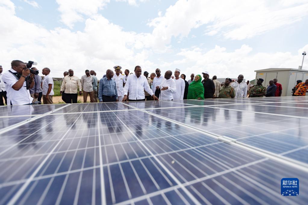 2019年12月13日,在肯尼亚加里萨郡,肯尼亚总统乌胡鲁·肯雅塔(中)出席加里萨光伏发电站投运启动仪式。