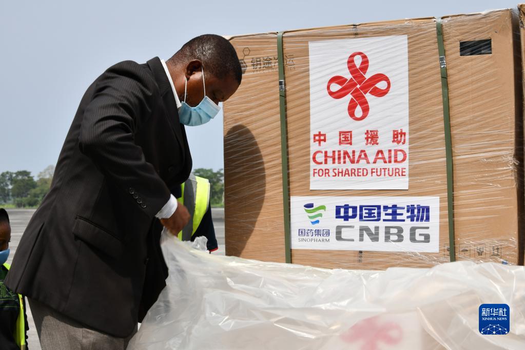 2月10日,在赤道几内亚马拉博,工作人员在机场整理转运中的中国新冠疫苗。这是中国政府向非洲国家提供的第一批疫苗援助。