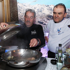 11月29日,在位于巴黎的法国外交部举行的LA LISTE国际美食榜单揭晓活动现场,一家法国餐厅的大厨现场制作海鲜美食。