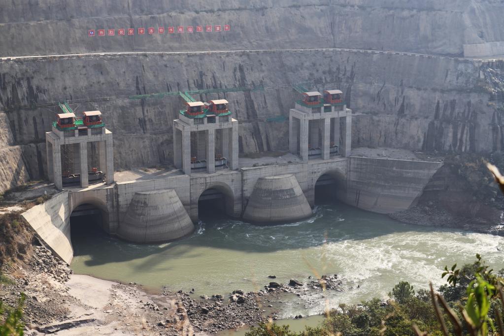 11月19日在巴基斯坦旁遮普省拍摄的卡洛特水电站导流洞闸门。中巴经济走廊首个水电投资项目卡洛特水电站11月20日顺利完成导流洞下闸,正式启动水库蓄水。(新华社记者李浩摄)