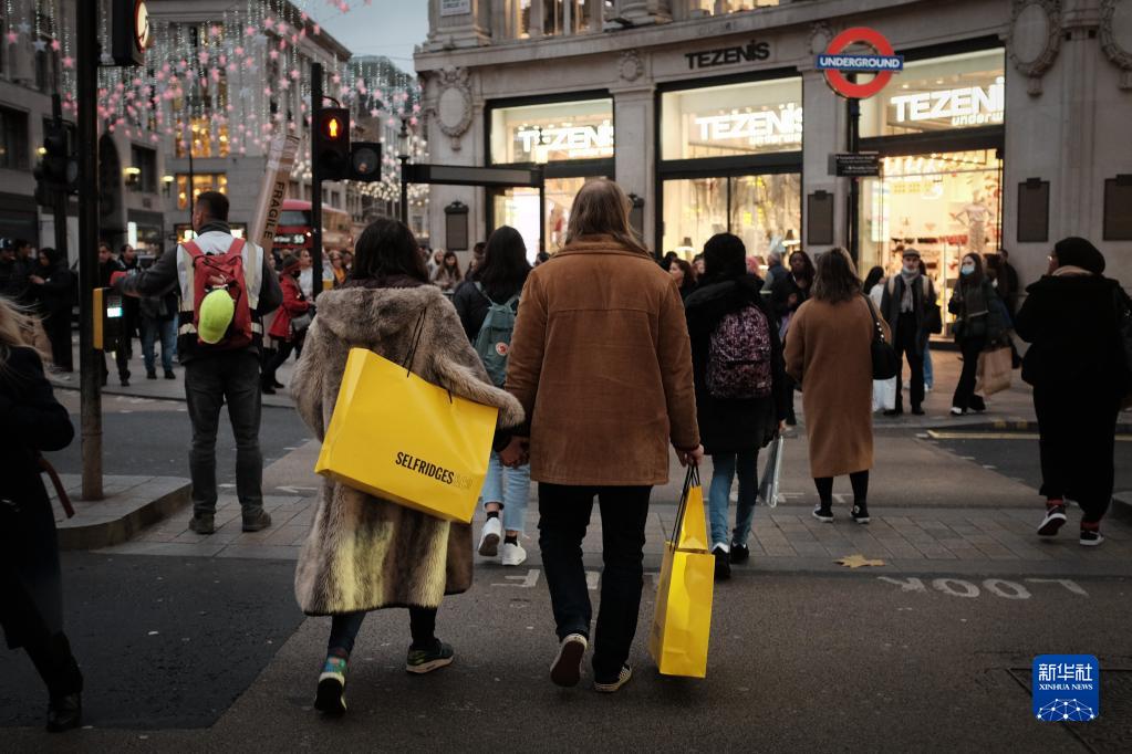 11月24日,人们提着购物袋走在英国伦敦市中心的牛津街。