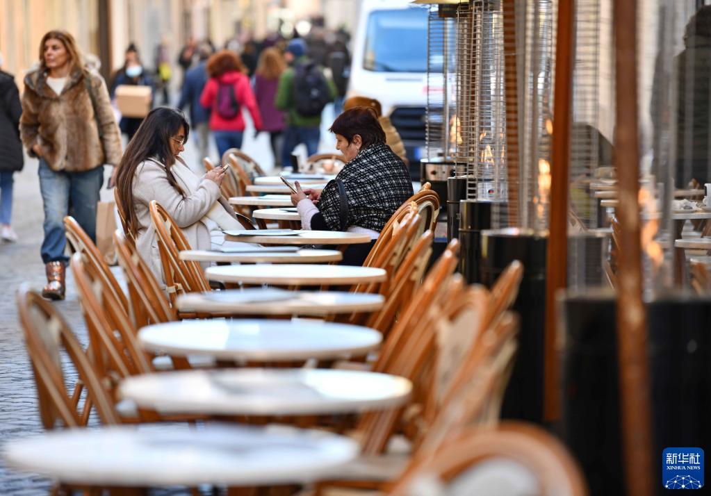 11月30日,人们在意大利罗马一处餐馆的户外区域消费。