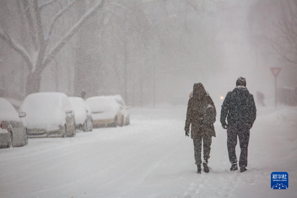 12月1日,行人在拉脱维亚里加的雪中行走。