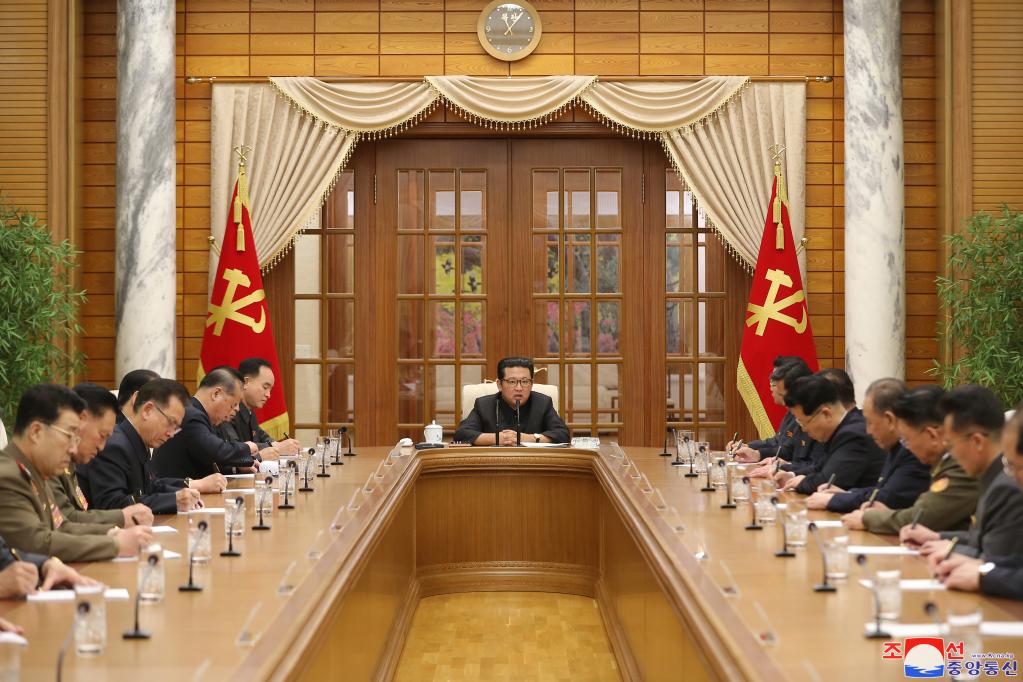 这张朝中社12月2日提供的图片显示的是1日举行的朝鲜劳动党第八届中央委员会第五次政治局会议现场。新华社/朝中社