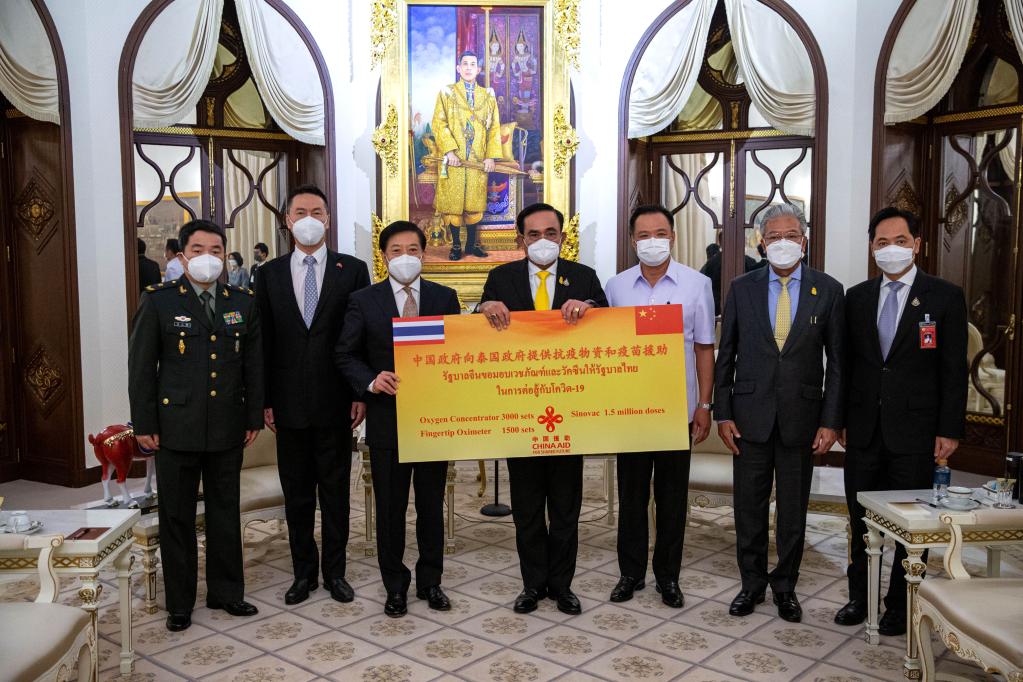 11月12日,援泰抗疫物资转交仪式在泰国曼谷的总理府举行,此次援泰物资包括中国科兴新冠疫苗、制氧机和血氧仪。新华社记者王腾 摄