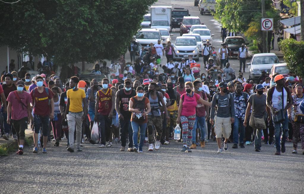9月4日,在墨西哥恰帕斯州塔帕丘拉,“移民大篷车”队伍向美国进发。新华社发(达米安·桑切斯摄)