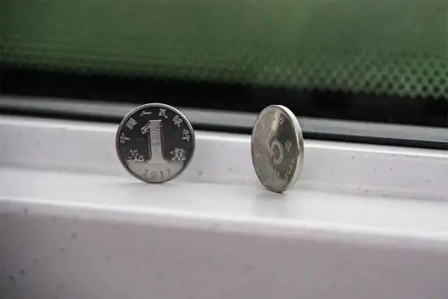硬币在行驶的列车上竖立不倒。昆明局供图