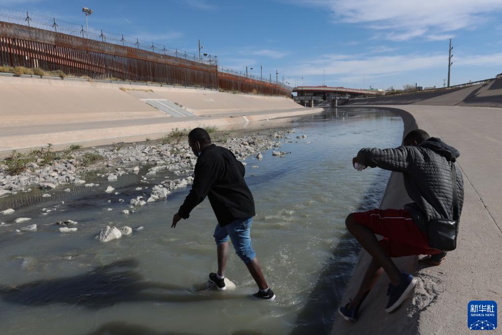 12月7日在墨西哥华雷斯城拍摄的照片显示,移民试图通过美墨边境的布拉沃河进入美国。
