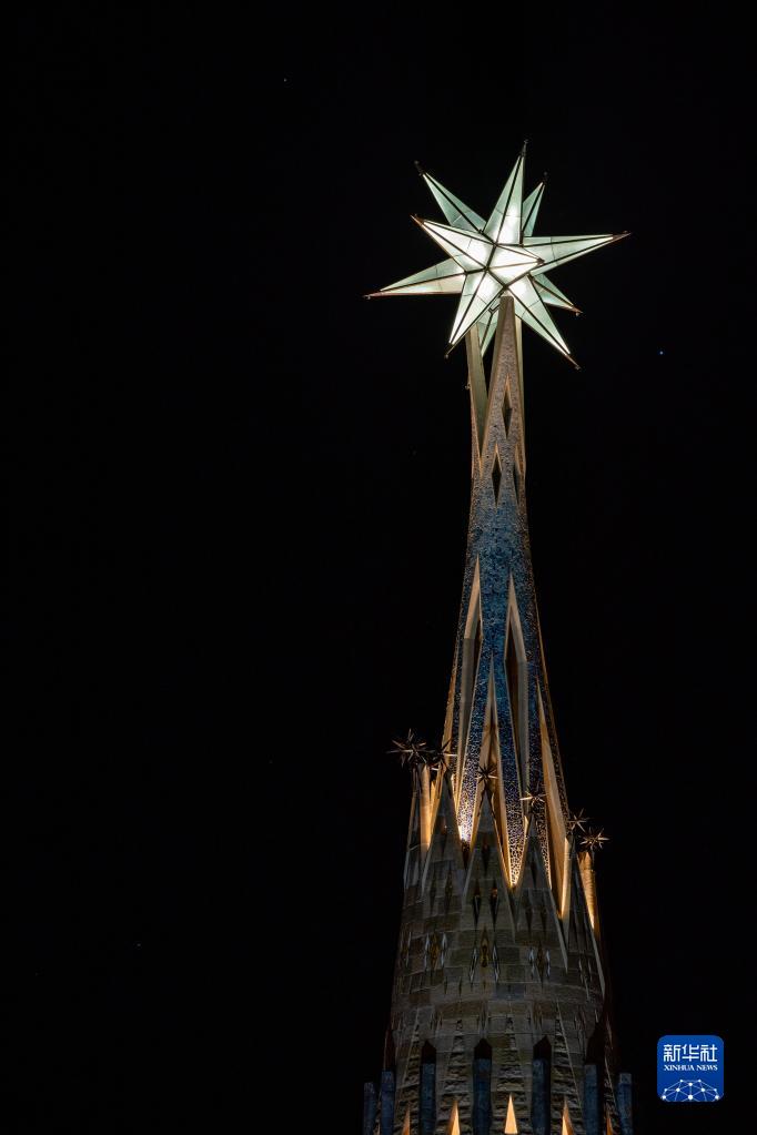 西班牙巴塞罗那地标建筑圣家族大教堂(又称圣家堂)上的塔顶之星于11月29日安装,12月8日点亮,标志着教堂建设“封顶”。圣家堂由西班牙著名建筑师高迪设计,从1882年开始修建至今,预计将于2030年竣工。