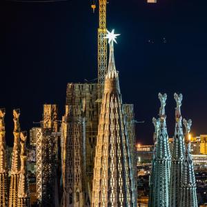 这是12月8日在西班牙巴塞罗那拍摄的圣家堂塔顶之星。