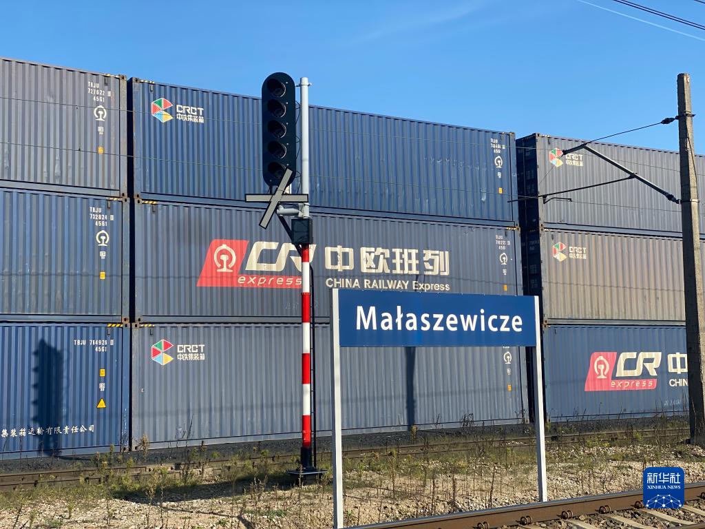 这是9月29日在波兰东部马拉舍维奇拍摄的中欧班列集装箱。新华社记者 张章 摄