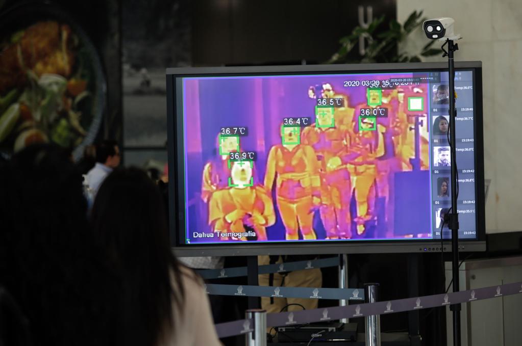 2020年3月26日,中国大华科技在墨西哥城装设的热成像测温系统。(弗朗西斯科·卡涅多摄)