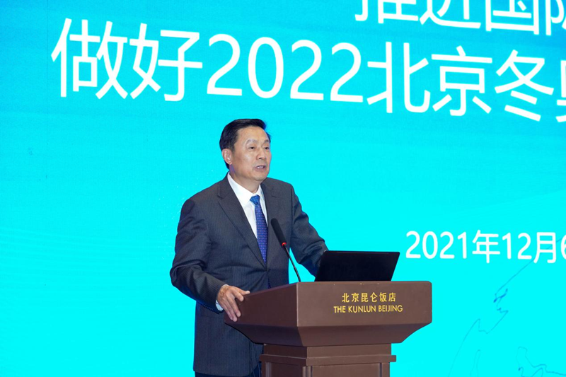 北京冬奥组委新闻宣传部部长赵卫东介绍了冬奥会基本情况、北京冬奥会和冬残奥会筹办进展及面临的风险挑战。他表示,北京2022年冬奥会筹办工作正顺利有序推进,场馆和基础设施已达办赛要求,赛时场馆化运营模式全面实行,赛会服务保障稳步推进,宣传推广和文化活动持续升温,可持续性工作成效显著。要继续积极稳妥应对新冠肺炎疫情、复杂气象条件等带来的风险挑战,全力办成一届简约、安全、精彩的冬奥盛会。他还围绕冰雪运动普及、在华外籍人士更好参与冬奥、北京冬奥会如何与碳中和相结合等话题,与参会人士进行交流互动。