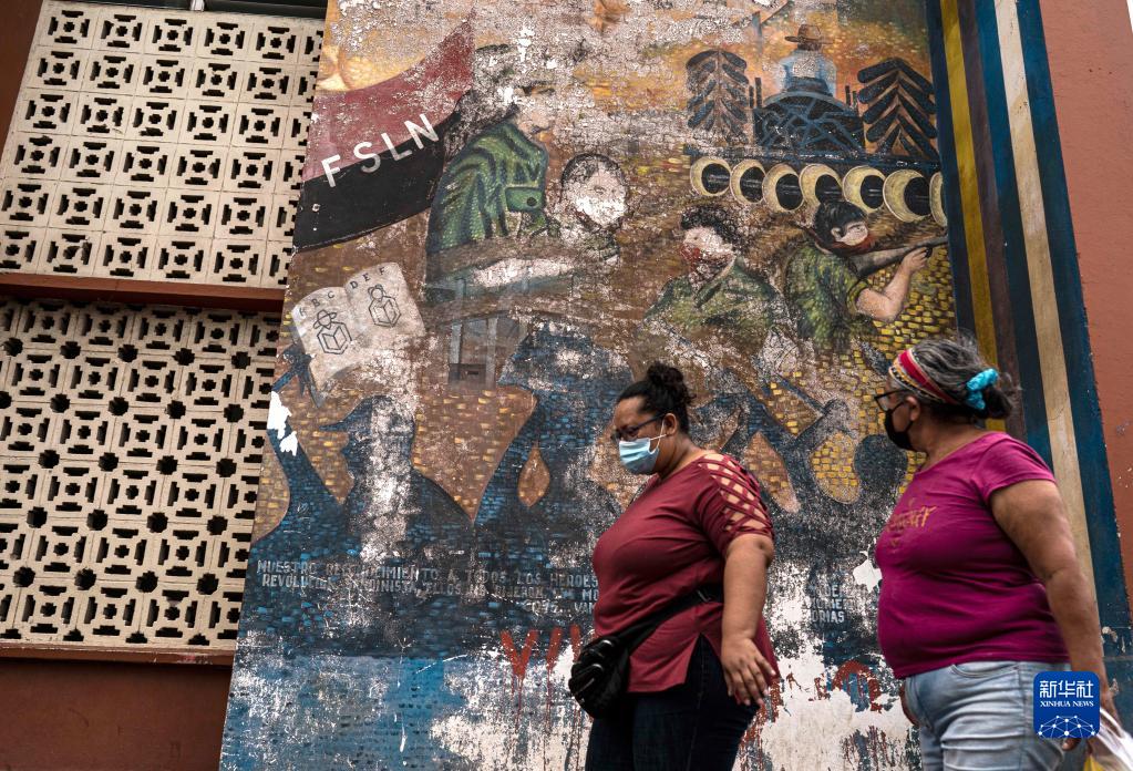 9月19日,人们从尼加拉瓜城镇圣马科斯的街头走过。