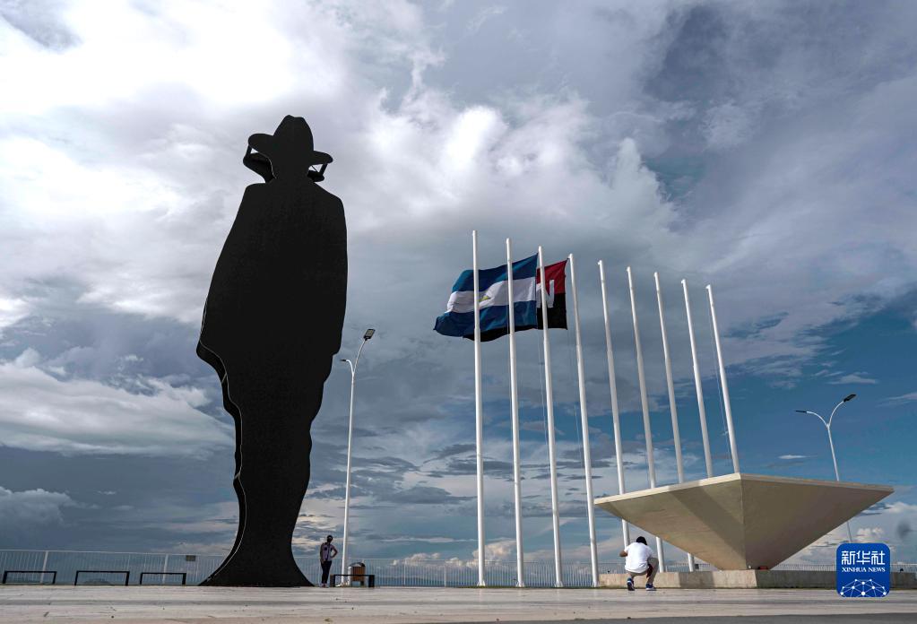 这是9月20日在尼加拉瓜首都马那瓜的蒂斯卡帕公园拍摄的尼加拉瓜民族英雄桑地诺雕像。