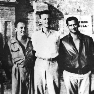 二战期间,被新四军营救的5名美国“飞虎队”飞行员在新四军驻地合影。(资料照片,新华社发,1944年8月摄)