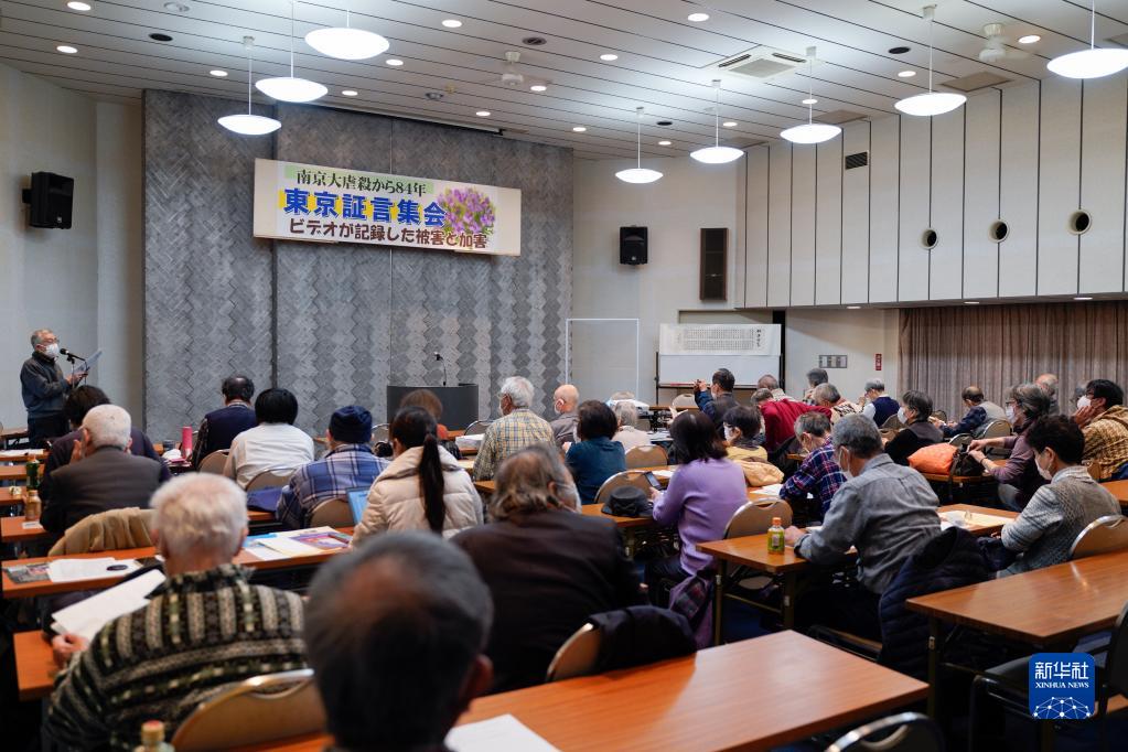这是12月11日拍摄的在日本东京都YMCA亚洲青少年中心举行的“南京大屠杀84周年证言会”现场。