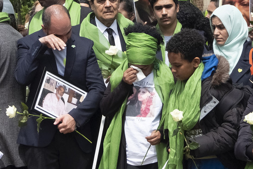 2019年6月14日,在英国伦敦,人们参加纪念活动悼念遇难者。当天是格伦费尔大火两周年纪念日。新华社发(雷伊·唐摄)
