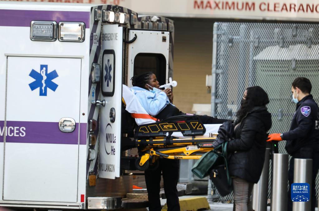 12月13日,医务人员准备将病人送入美国纽约一家医院的急诊。新华社记者 王迎 摄