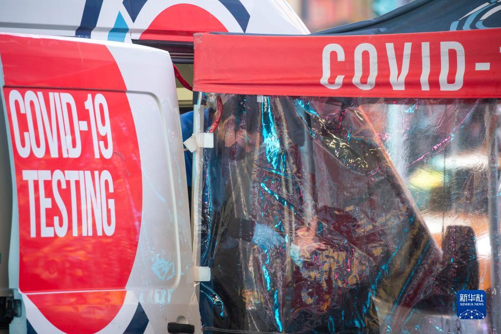 这是12月14日在美国纽约时报广场拍摄的临时新冠检测点。新华社发(郭克摄)