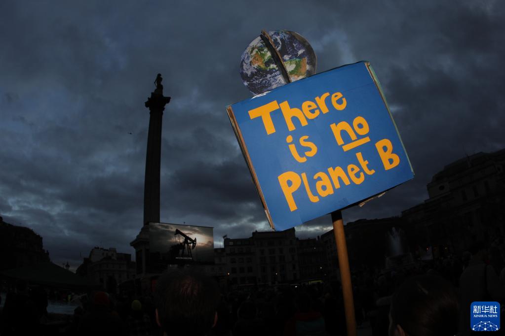 11月6日,人们在英国伦敦特拉法加广场参加集会,号召为应对气候变化采取更多行动。