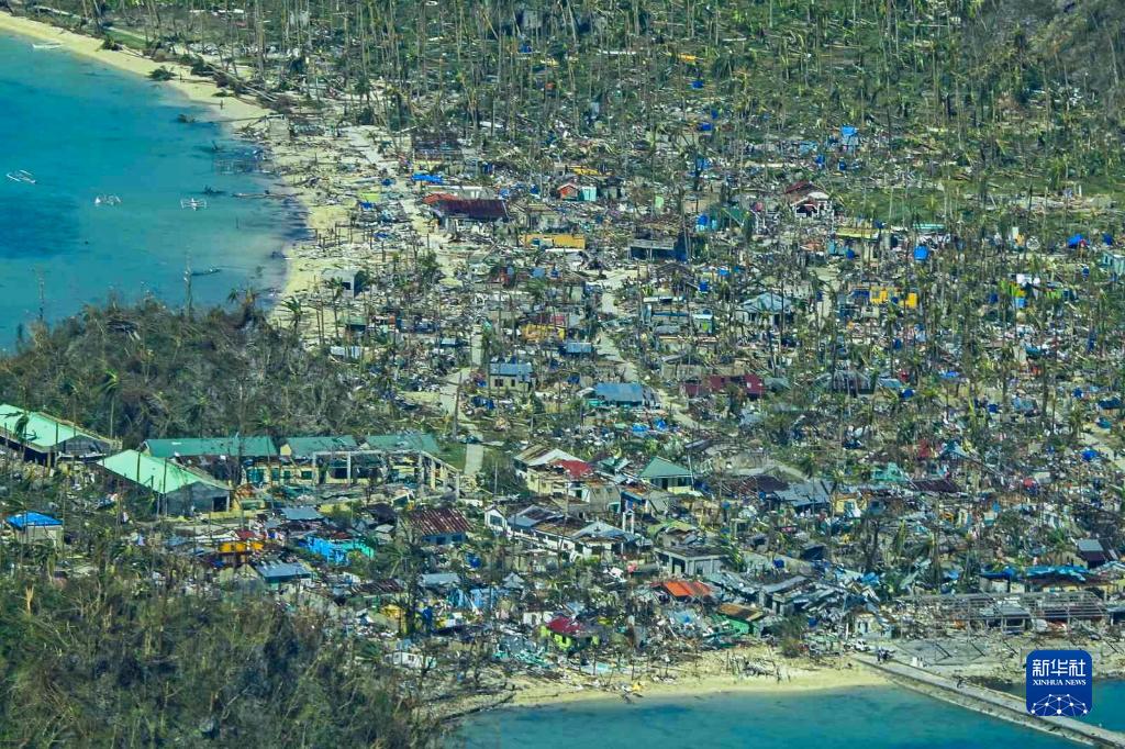 这是12月17日在菲律宾北苏里高省航拍的遭台风“雷伊”破坏的区域。