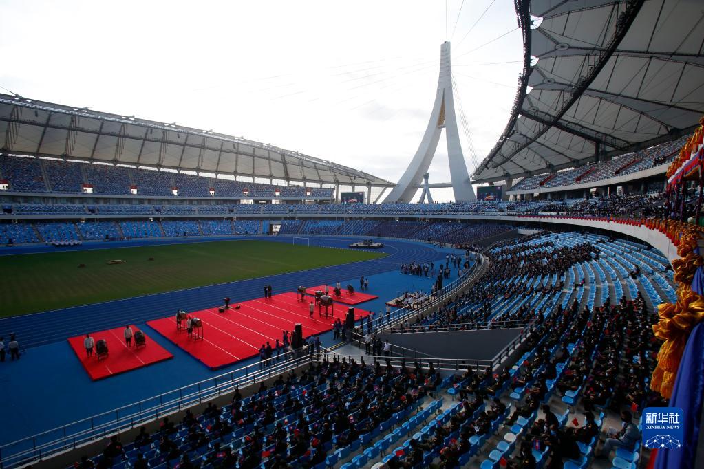 这是12月18日在柬埔寨金边拍摄的柬埔寨国家体育场启用仪式现场。