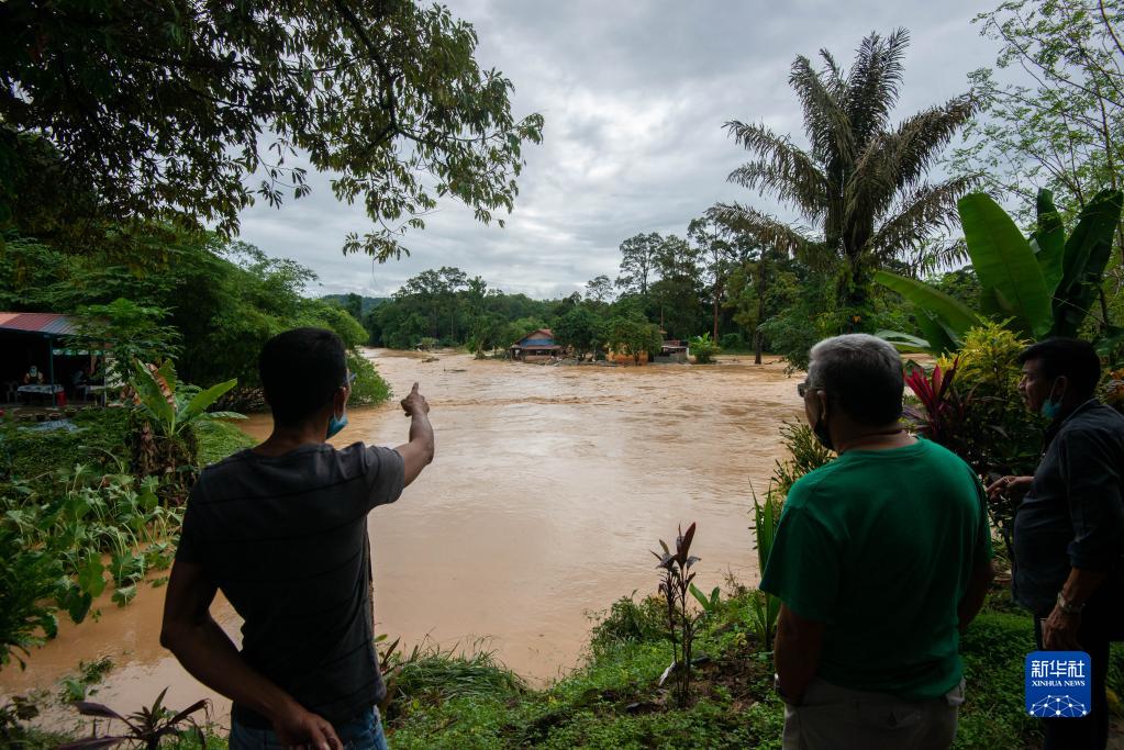 12月19日,在马来西亚雪兰莪州乌鲁冷岳,当地居民望着上涨的河水。