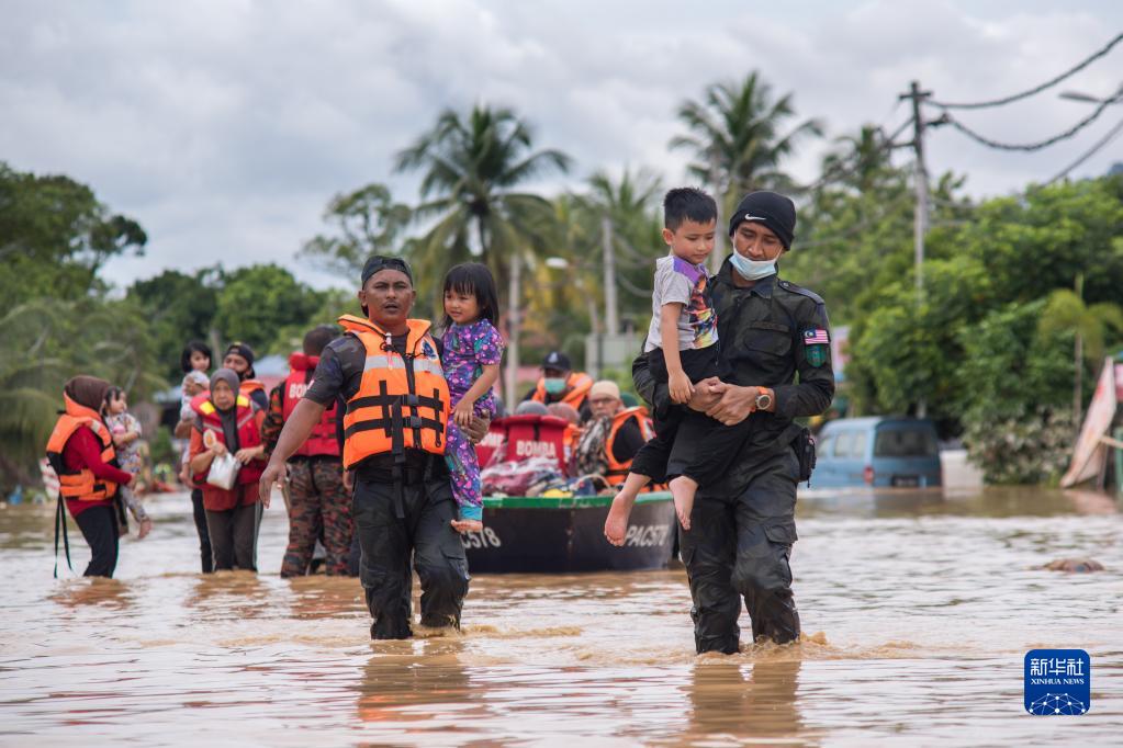 12月19日,在马来西亚雪兰莪州乌鲁冷岳,救援人员转移受洪水围困的灾民。