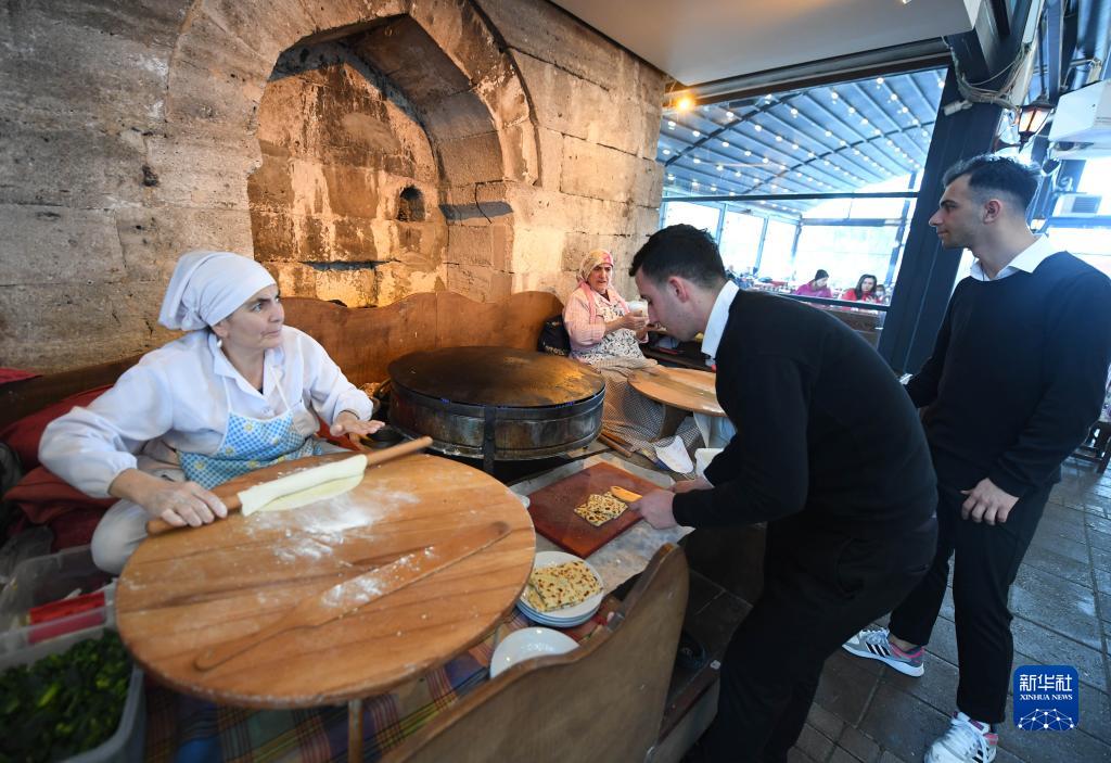12月18日,在土耳其伊斯坦布尔一家餐厅,服务员准备土耳其美食。